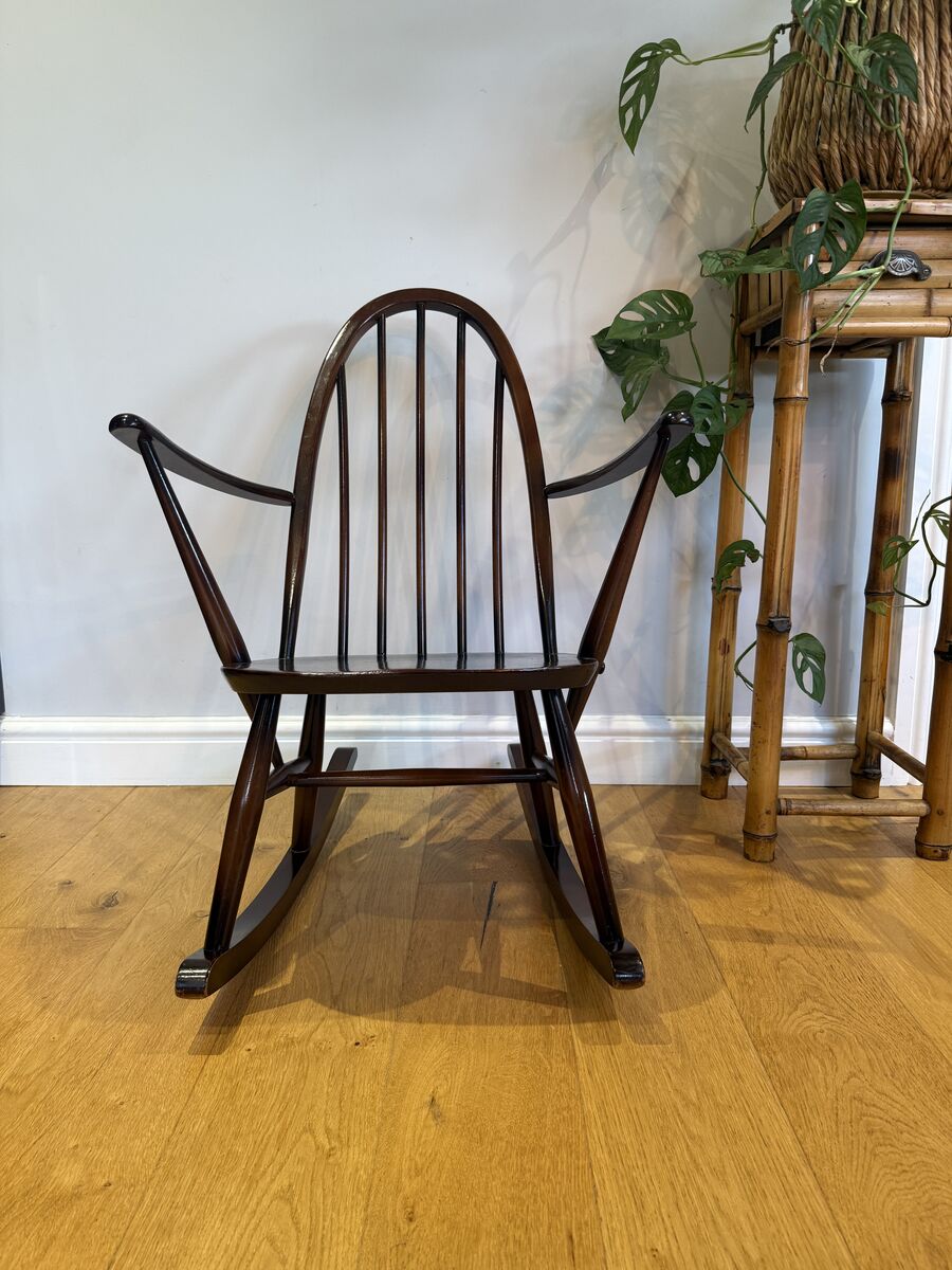 A beautifully made vintage Ercol small rocking chair, model number 428 (as documented in Ercol Furniture by Lesley Jackson). A classic and highly recognisable design, valued for its elegant proportions and enduring craftsmanship.