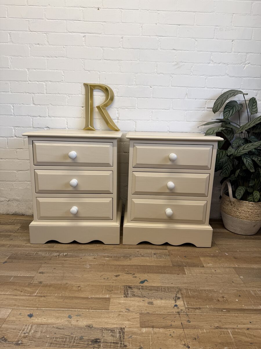 Dating from around 2000, these are well-made, solid pieces with a reassuring weight and classic proportions. They’ve been carefully prepped, painted in Joa’s White by Farrow & Ball – a soft, warm neutral that works effortlessly in both modern and traditional bedrooms – and finished with new white ceramic knobs for a clean, timeless look.